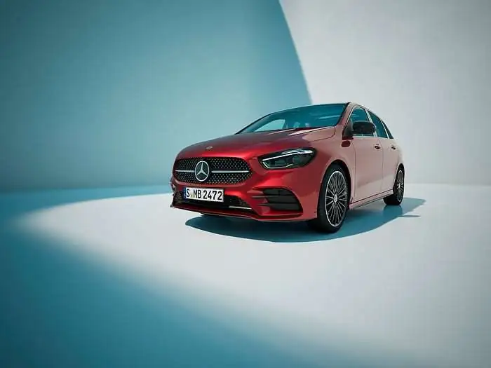 Progressive, confident exterior:At first glance, the updated front end catches the eye. The newly designed, optionally available LED headlamps, the sporty bumper and the radiator grille give the new B-Class a dynamic boost thanks to their smooth transition to the visually compact greenhouse.