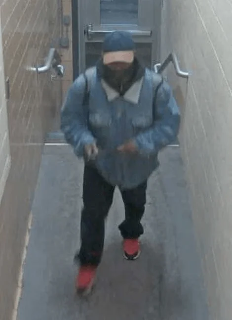 About three hours after the shooting erupted, MSU police released two still images of the suspect, taken by a surveillance camera, that showed him walking into a building, then mounting a short flight of stairs, wearing a jacket, jeans, a baseball cap and a black mask over his lower face.