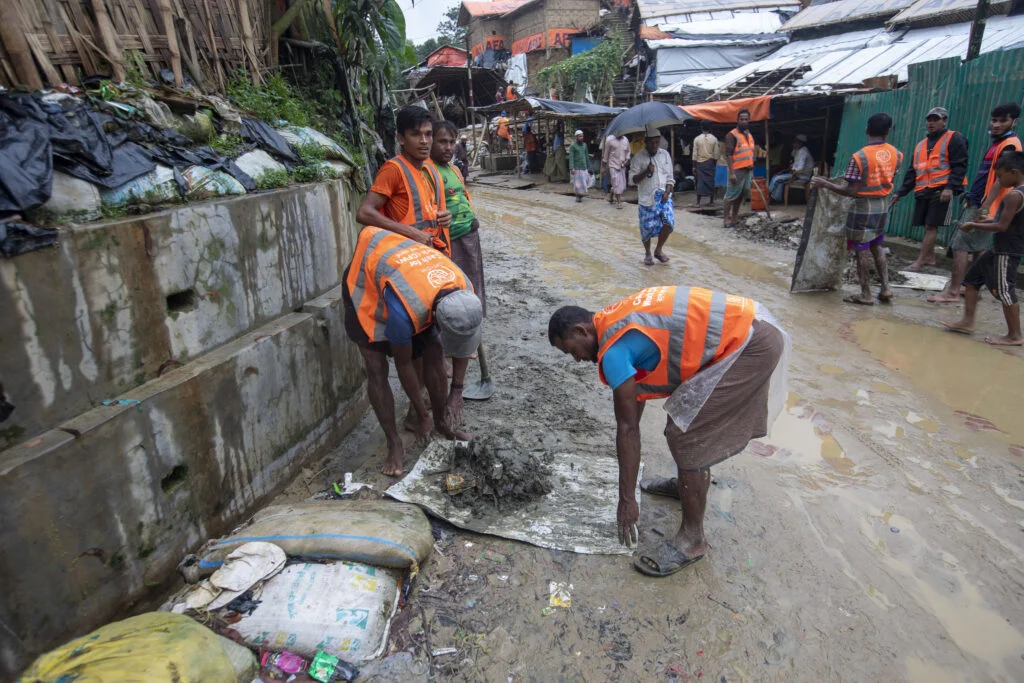 The International Organization for Migration (IOM) said today many of the more than 13,000 Rohingya refugees forced out of their camps by flooding in Cox's Bazar which has killed at least six people were returning to their shelters to salvage belongings after a break in heavy rains, but the risk of more casualties remained high.